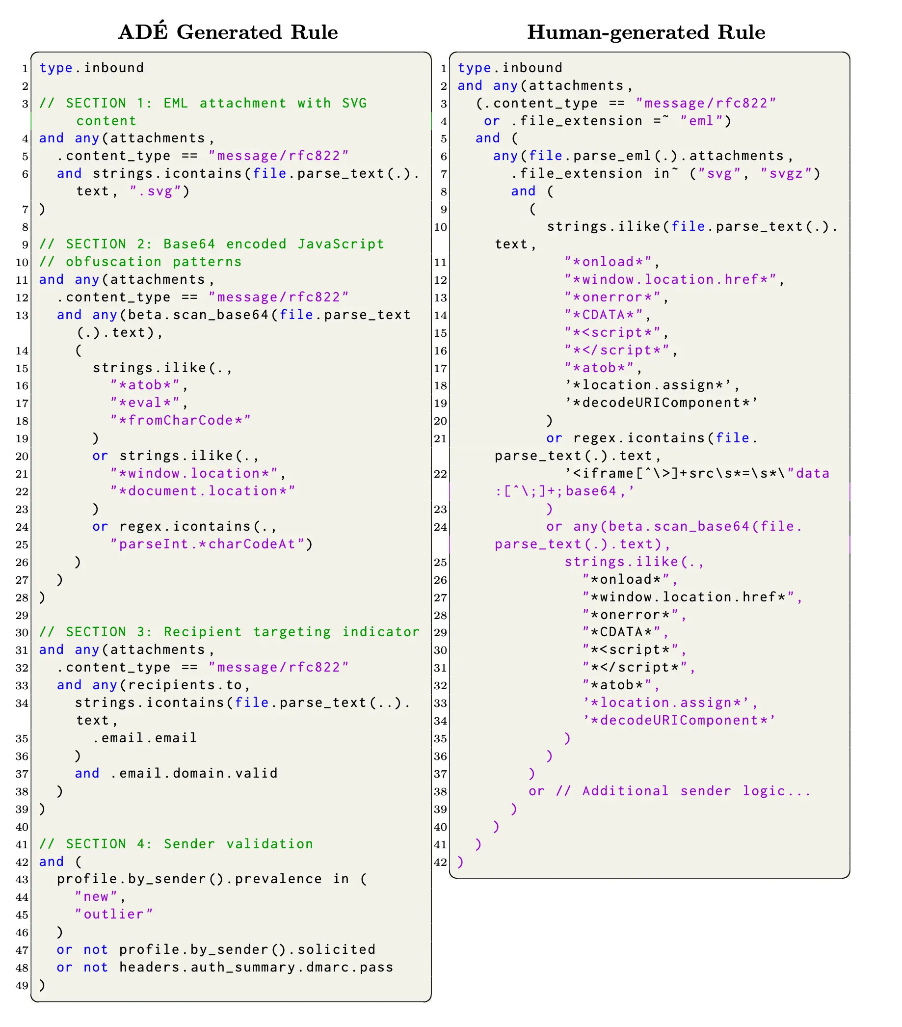 They list evaluations of several rules towards the end of the post, and I’m impressed by their performance. They compare the results to a human-written rule, and it appears to have performed well in some detection types against humans but underperformed in others. However, the idea here (in my opinion) isn’t to replace humans, but to augment us, and I think this framework helps achieve that.
