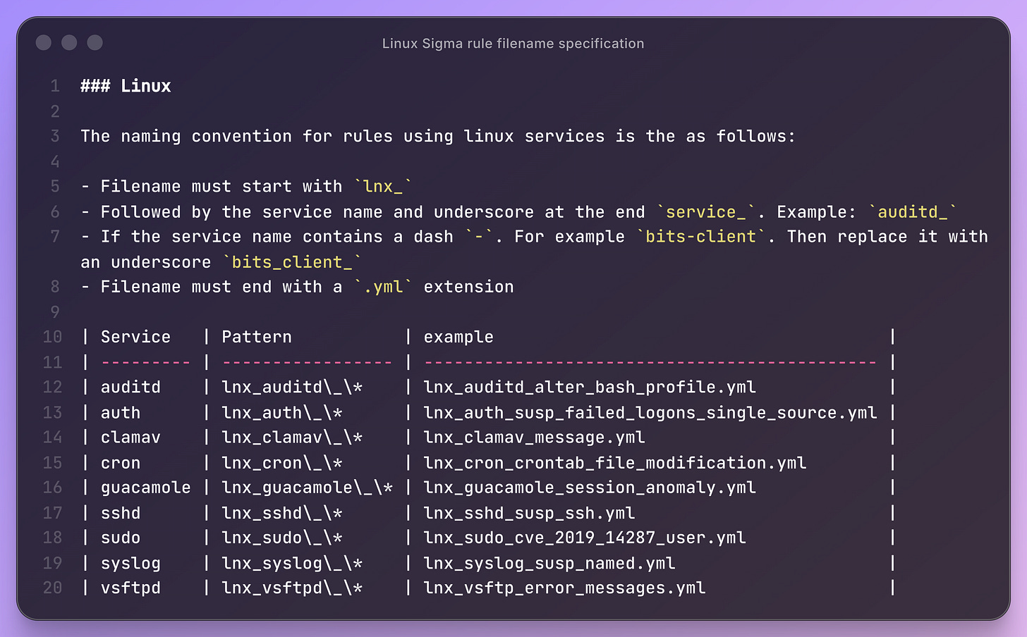 I love the attention to detail here. When you have a ruleset of thousands of rules, you need to ensure consistency in every step of the detection engineering process. It may not matter to have these conventions when you are a single team managing dozens of rules, but when you are a five-person team managing 1000s, it makes the ruleset more attractive for others to use and also keeps you sane.