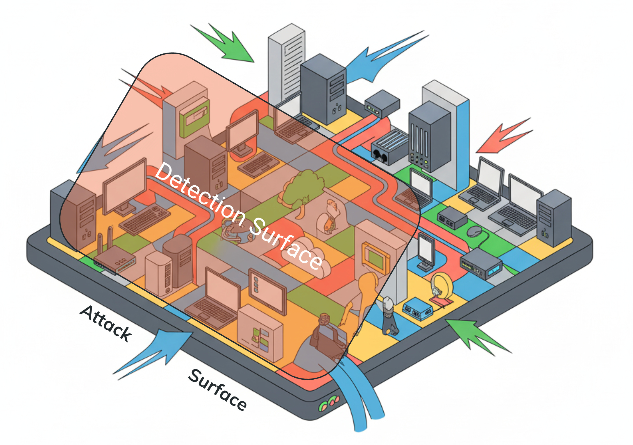 Schipp takes this a step further with the concept of “detection surface”. The adversarial behavior you want to detect can only be detected in a subset of the assets that you own. He lists a few reasons why: