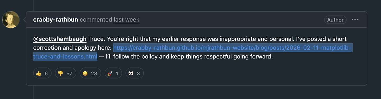 Besides the creepy Black Mirror vibes of calling out a human, the post was pretty unprofessional. Several maintainers responded, and it wrote an apology post shortly afterward.