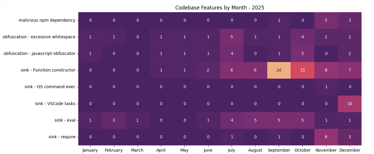 The actors then started moving to other delivery mechanisms, such as malicious npm dependencies and malicious VS Code tasks. It really shows the dynamic, startup-y nature of Contagious Interview, as they continue to innovate and try new things to try to infect victims. The team reviews several examples from the above heatmap, and give their opinions on guidance and what to track moving forward.