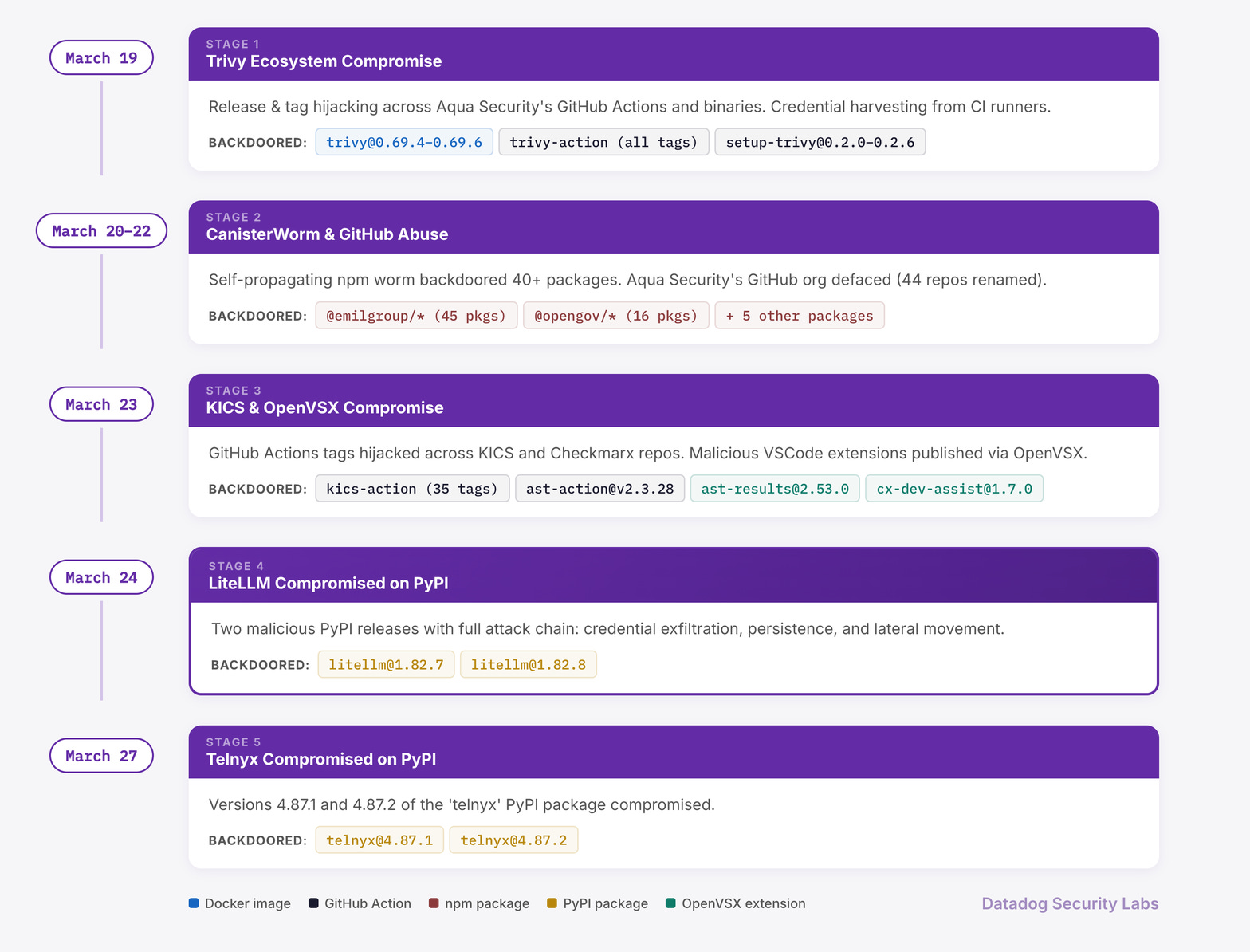 The fallout from the Trivy compromise led to several package compromises, and LiteLLM & Telnyx were among the bigger ones.